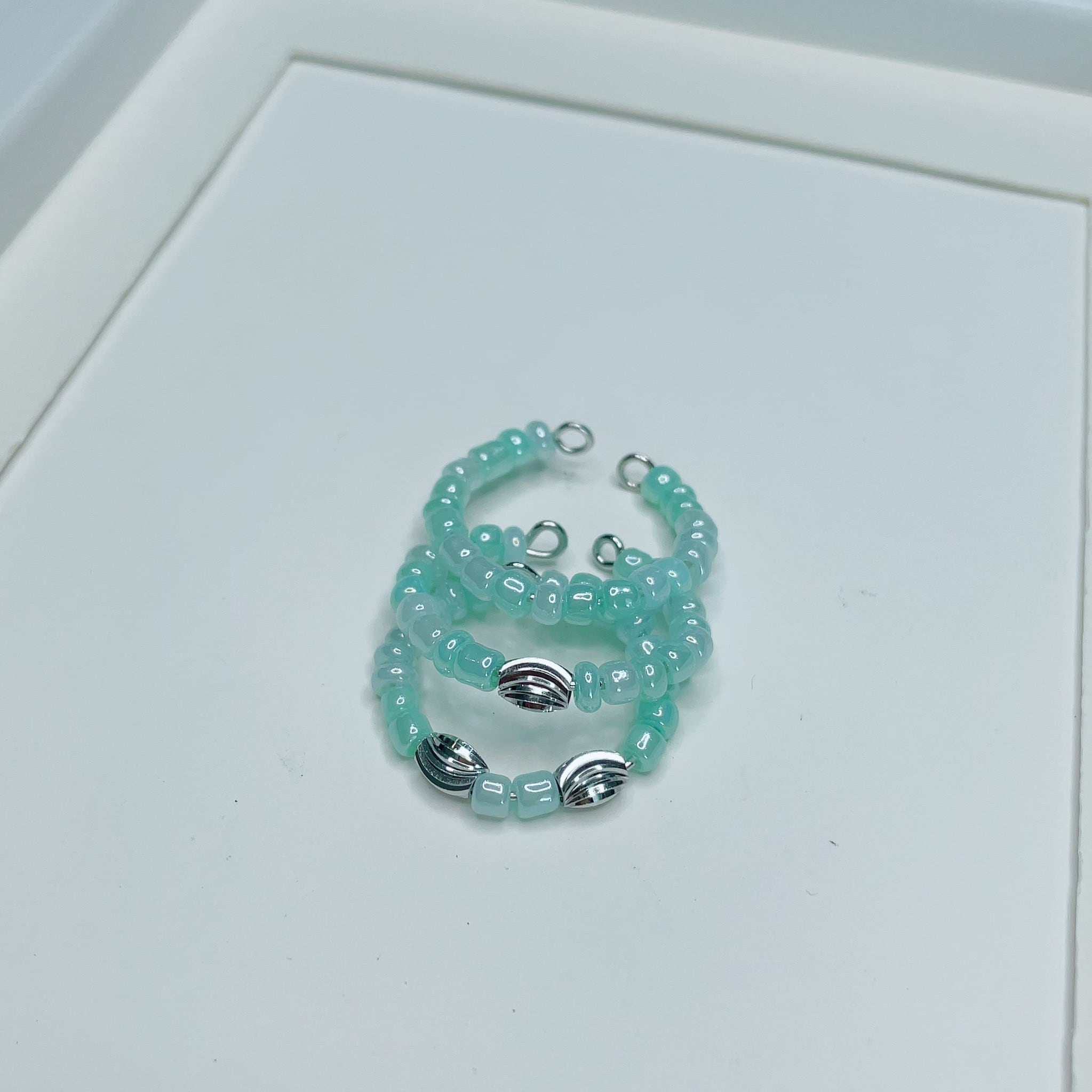 R's ビーズリング〜ブラック&シルバー2set